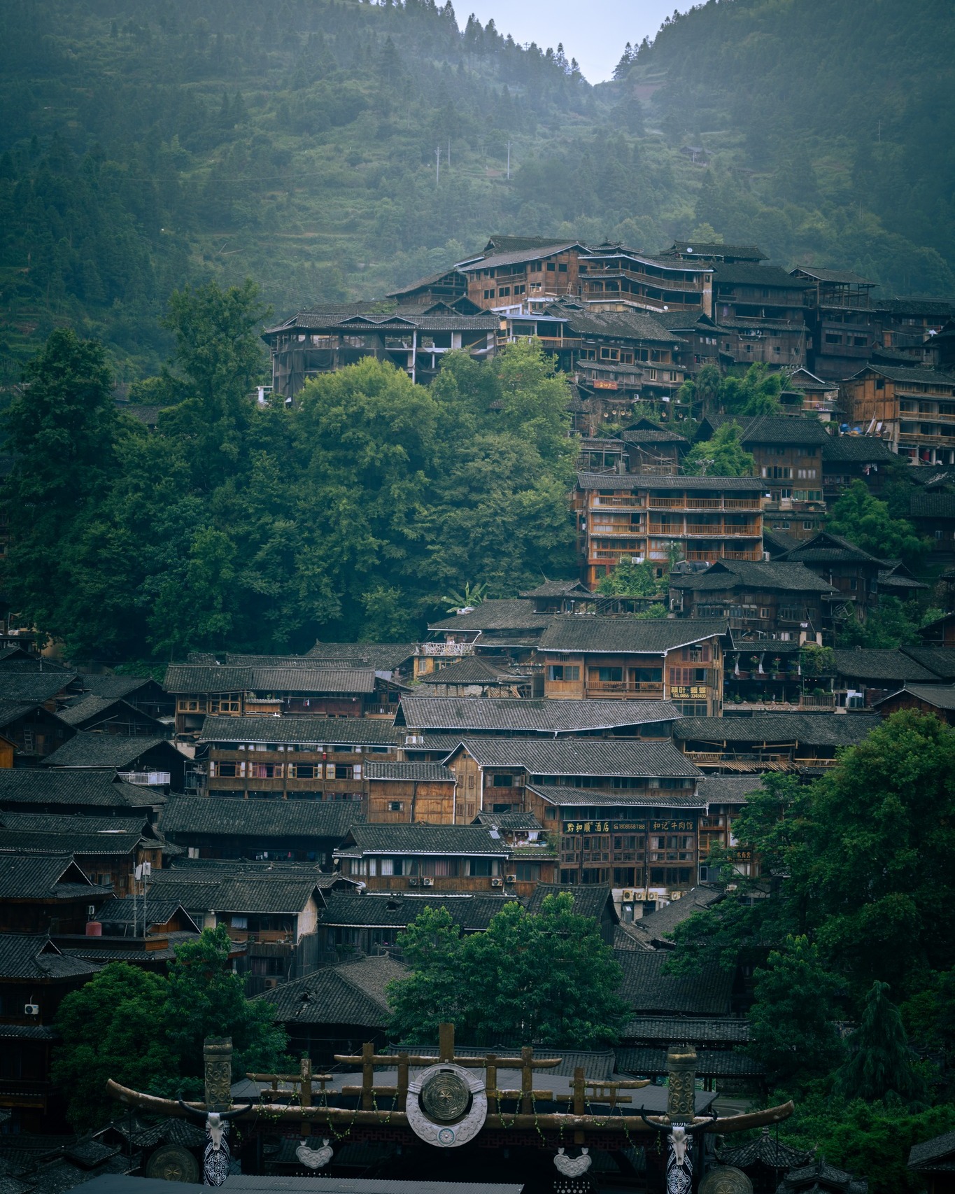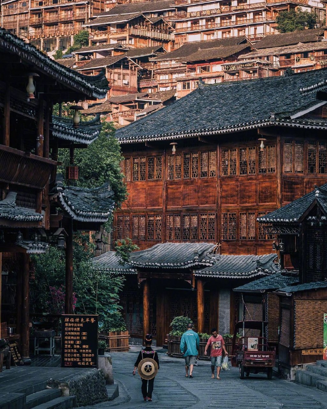 Quý khách ăn sáng tại khách sạn, làm thủ tục trả phòng, hướng dẫn đưa Quý khách đi tham quan Mặc Dung Miêu Trại – cảm nhận văn hóa và kiến trúc của Miêu Gia, những con đường lát đá xanh trong thành phố cổ, những ngôi nhà sàn bằng gỗ bên sông, nhiều tòa nhà cổ kính và phong tục Miêu mạnh mẽ tạo nên hương vị độc đáo của một thành cổ Trung Quốc tuyết đẹp và trầm mặc.