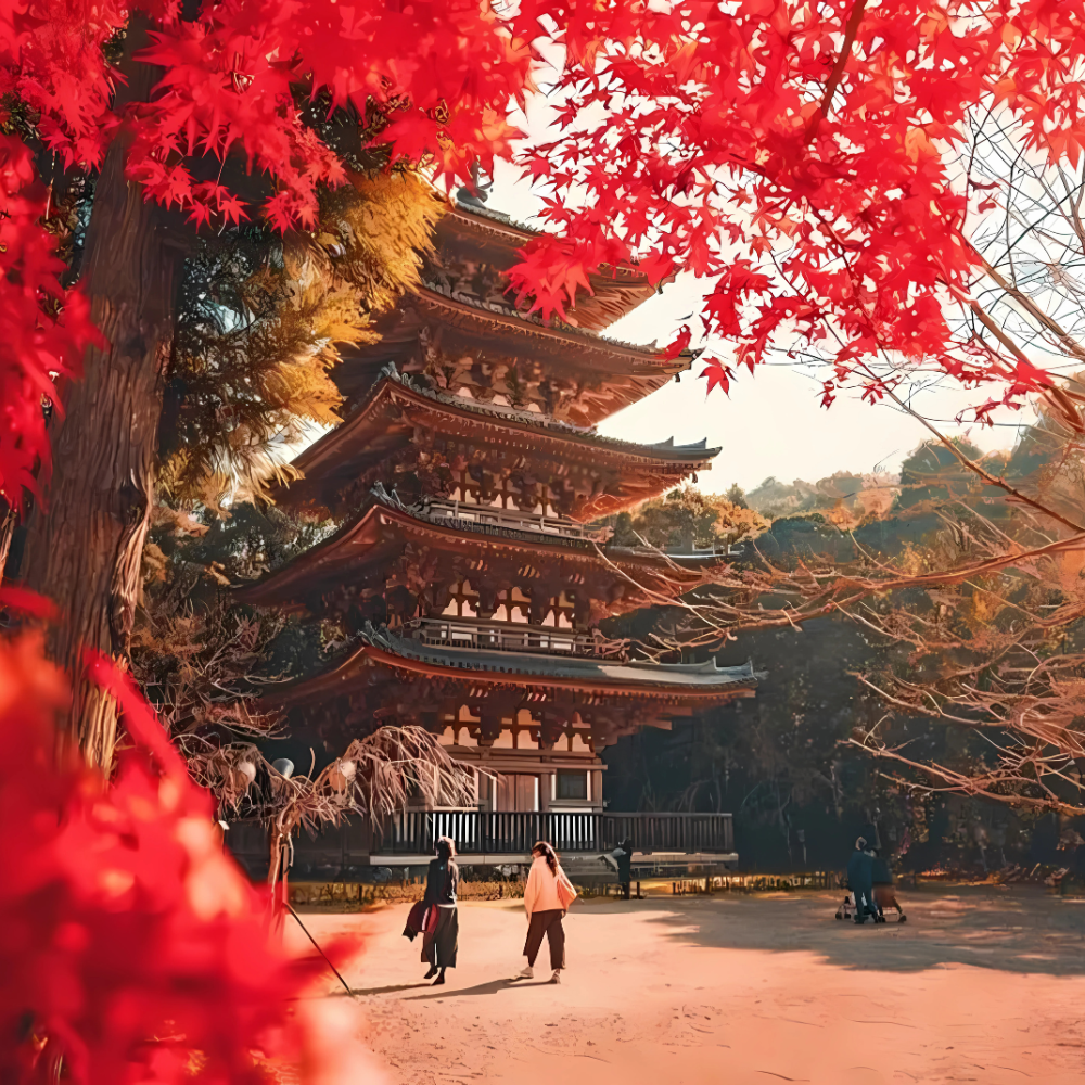 Hành lang lá đỏ tại Hồ Kawaguchi: nằm tại bờ Bắc hồ Kawaguchi rực rỡ mỗi độ thu về với hơn 60 cây phong tạo thành đường mòn thơ mộng. Sắc đỏ, cam, vàng phản chiếu trên mặt hồ tĩnh lặng, hòa cùng khung cảnh hùng vĩ của núi Phú Sĩ, mang đến trải nghiệm lãng mạn và ấn tượng nhất mùa thu Nhật Bản.
